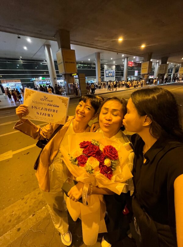 Welcoming Catherine and her family with a flower bouquet at the airport, marking the start of a memorable journey
