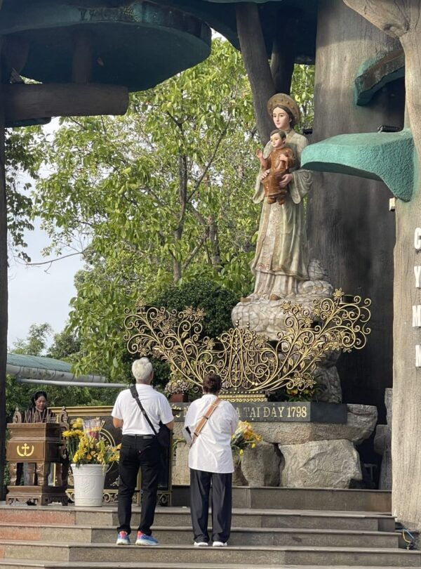 A spiritual moment captured at the Lady of La Vang shrine, a revered site in Vietnam