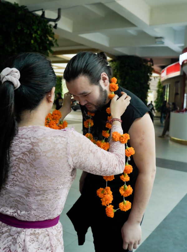 After a long journey, our guest received a traditional Balinese flower garland to celebrate her arrival