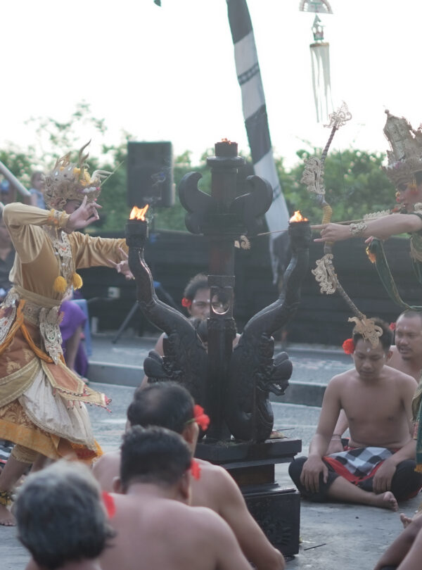 A fiery night at Uluwatu, where the hypnotic Kecak rhythm, dramatic ocean cliffs, and blazing fire dance create an unforgettable cultural spectacle.
